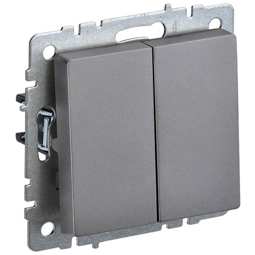 Выключатель двухклавишный IEK ВС10-2-0-БрС Brite (10 А, IP20) скрытой установки, сталь