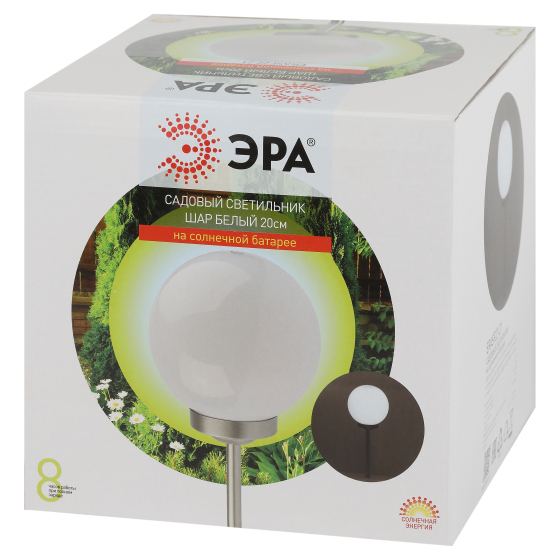 Светильник светодиодный грунтовый "Эра" ERASF22-21 "Шар" (IP54) на солнечной батарее, серебро, цвет свечения холодный белый, Ø200 мм